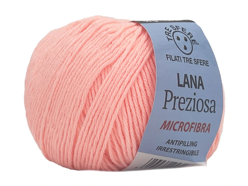 Priadza Lana Preziosa od talianskeho výrobcu Filati Tre Sfere je vyrobená zo 100 % akrylového mikrovlákna. Je to nekrčivé, hladké a jemné mikrovlákno, má protižmolkovú (antipillingovú) úpravu. Ľahko sa s ňou pracuje. Je vhodná na celoročné projekty.