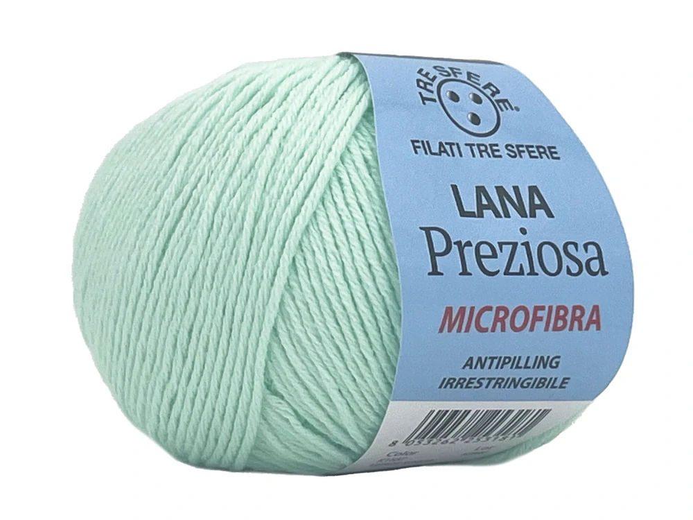Priadza Lana Preziosa od talianskeho výrobcu Filati Tre Sfere je vyrobená zo 100 % akrylového mikrovlákna. Je to nekrčivé, hladké a jemné mikrovlákno, má protižmolkovú (antipillingovú) úpravu. Ľahko sa s ňou pracuje. Je vhodná na celoročné projekty.