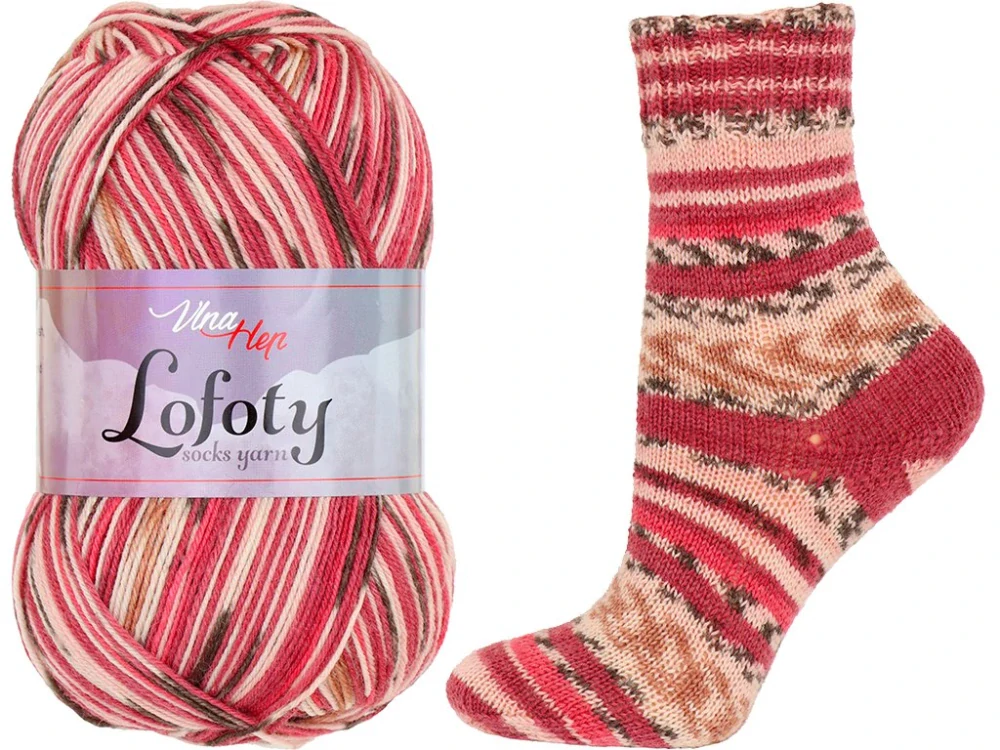 Velmi kvalitná samovzorovacia priadza, ktorá je zložením rovnaká ako ponožkové priadze. Preto je ideálná na pletenie ponožiek, ale z nej môžete upliesť alebo uháčkovať aj šály, svetre, čiapky a pod. Priadza je samovzorovacia, vytvára nórske vzorovanie bez vypletania. Vzor sa mení v závislosti na počtu očiek v jednom rade, preto bude vyzerať inak na svetri ako na čiapke alebo na ponožkách.